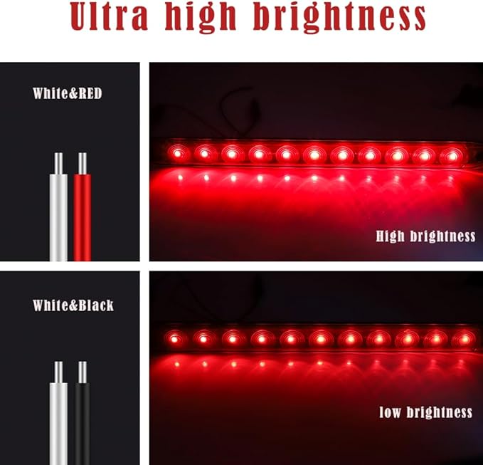 【取り付け方法】ライトバーには2つの固定ネジ穴があり、ネジ穴の距離は37cm、配線方式:黒線--負極、赤線--赤色高輝度、白線--赤色低輝度