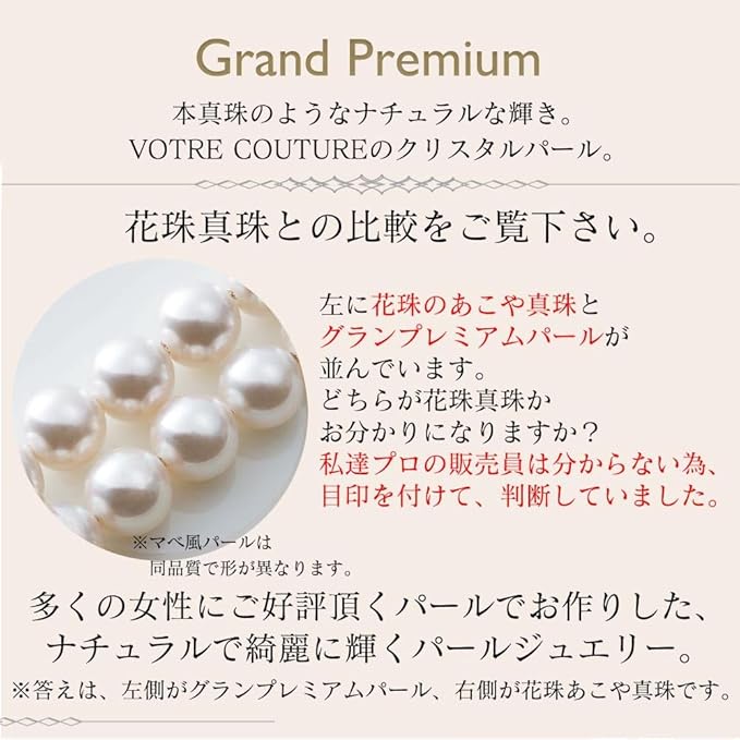 【国内の自社工房にて製作】 照り・色・キズなどの品質にこだわり、本真珠のように輝くプレミアムなクリスタルパールを使用しています。