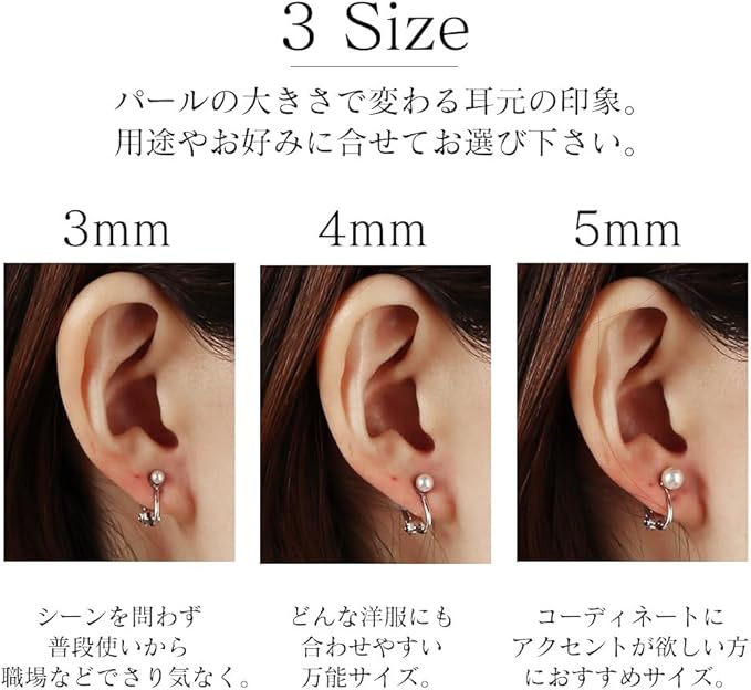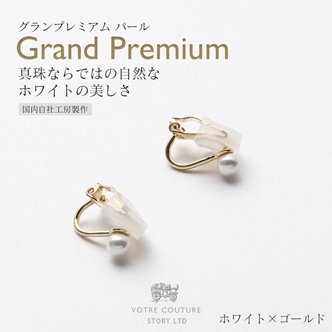 サイズ(約)/イヤリング:縦1.4cm 横0.6cm、真珠サイズ:0.3cm 素材/宝石:グランプレミアムパール(クリスタルパール)、留め具/真鍮(金メッキ)、シリコン:長時間の着用でも痛くなりにくいソフトクリップ式です。