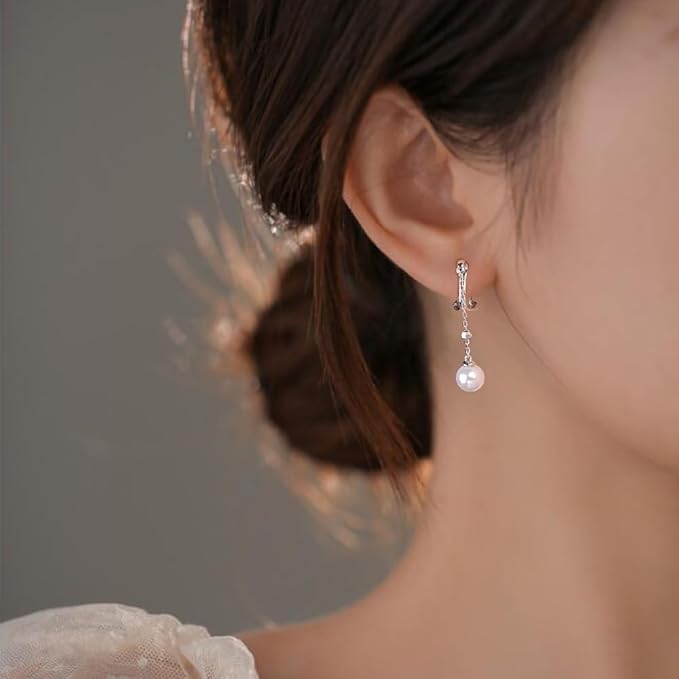 揺れる真珠:イヤリングのデザインはユニークで、耳飾りの中間には銀色の小さな珠があり、チェーンで底の真珠とつながっており、優雅で大方な印象を与えています。パールは揺れる心のようで、いつもあなたのように愛を訴えています