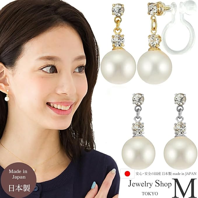 [ジュエリーショップエム] レディース イヤリング ノンホールピアス パール スワロフスキー シンプル アクセサリー ニッケルフリー 日本製 ゴールド e2810 e2811 | oioioichan