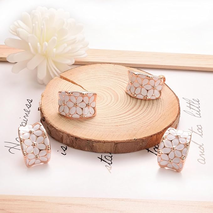 【素材】树脂、高品質の真鍮、ピンクゴールドメッキの3層。付属品:yoursfs 専用ケース、ジュエリーメンテナンスマニュアル。白い花のイヤリング