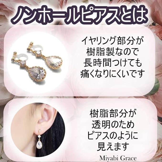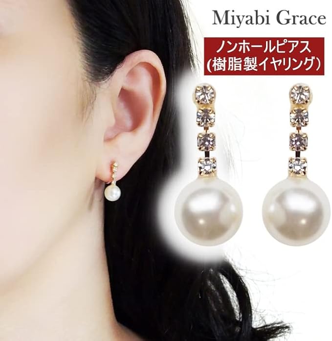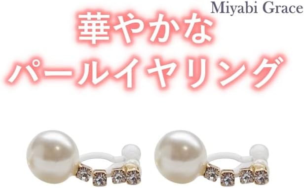 イヤリング レディース ノンホールピアス 痛くない 人気 パール 白 真珠 ホワイト ゴールド クリスタル シルバー ラインストーン 揺れる 樹脂製イヤリング MiyabiGrace 披露宴 | oioioichan