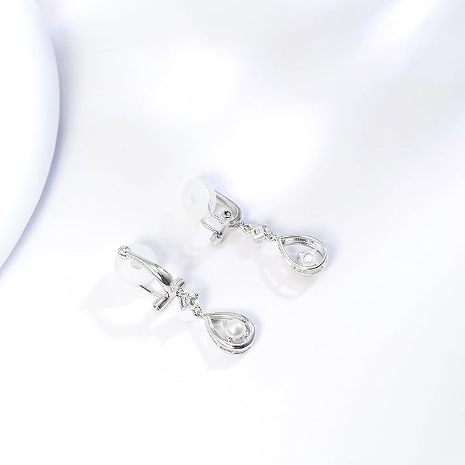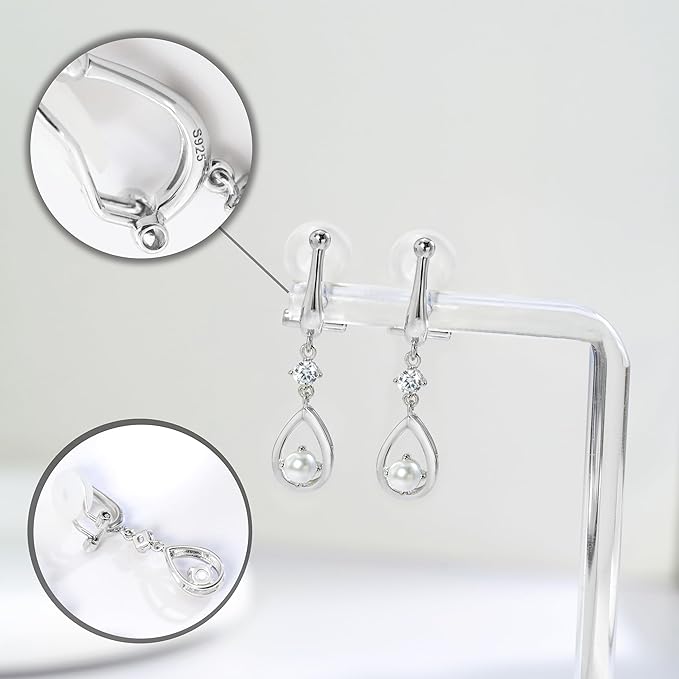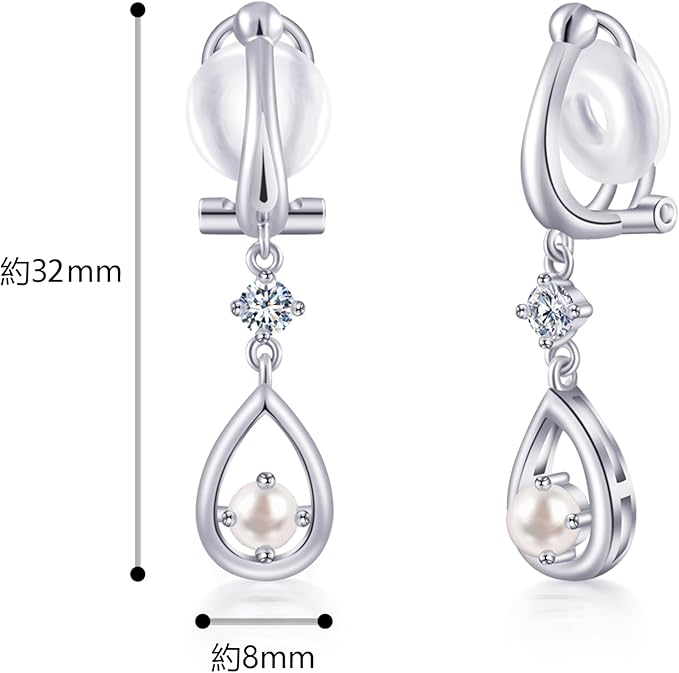商品仕様:2個入り。イヤリングサイズ:(縦)約32mm/(横)約8mm。重さ:1ペア4グラム。素材:金属アレルギー対応の材質、貝パール。付属品:精美な包装ケース、高級ベロア調ポーチ、専用磨きクロス