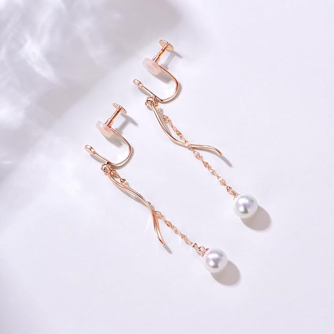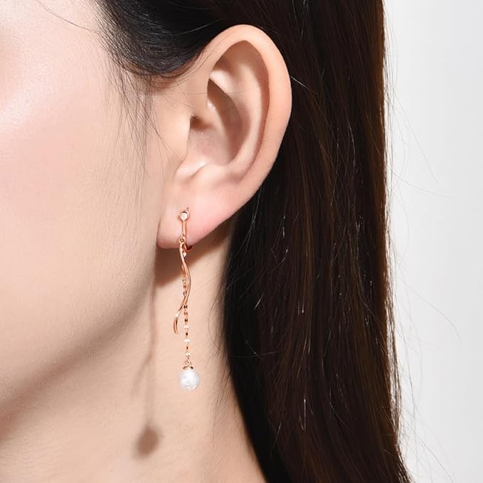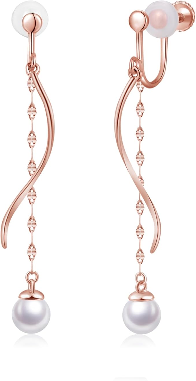 痛くない:イヤリング ピンクゴールドは全体の重量がとても軽く、耳に触れる部分がとても優しいので、一日中つけていても痛くありません。繊細な唇のストラップに合わせた人気のイヤリングで、小さなパールが歩くたびに小刻みに揺れます