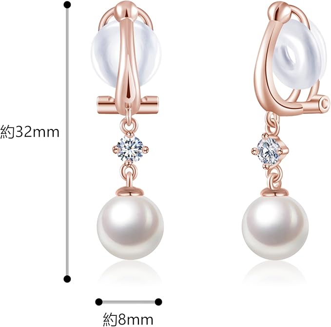 商品仕様: 2個入り。イヤリングサイズ:縦 約32mm/横 約8mm。 重さ:1ペア3.9グラム。 素材:アレルギー対応の材質、最高品質ジルコニア、貝パール(8mm)。 付属品:精美な包装ケース、高級ベロア調ポーチ、専用磨きクロス