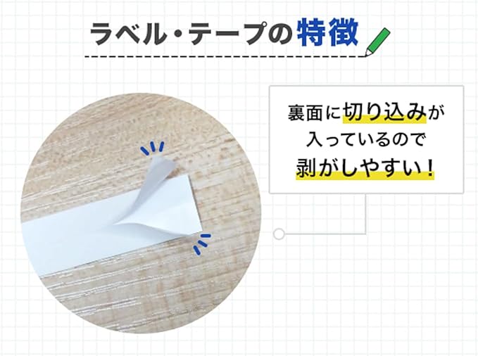 【特徴】強力な粘着力で、様々な素材にしっかり貼り付けられます。テープ側面にも商品スペックのラベルが付いているため、保管時にも識別しやすくて便利です。