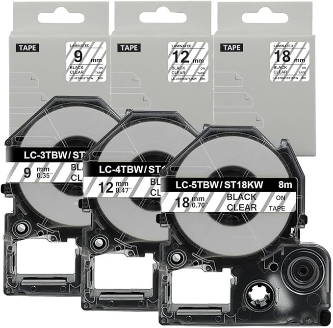 【インク革命】 キングジム用 テプラ PRO 対応 互換 テープカートリッジ 透明/黒文字 9mm 12mm 18mm 強粘着ラベル 3本セット ST9KW ST12KW ST18KW 長さ8m 【日本企業】 | oioioichan