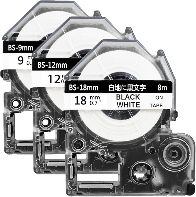 【ラベル仕様】モデル: 互換品 キングジム SS9K SS12K SS18K 色: 白テープ黒文字 幅: テプラ テープ 9mm 12mm 18mm 長さ:8m タイプ:スタンダードテープ 本数:3本