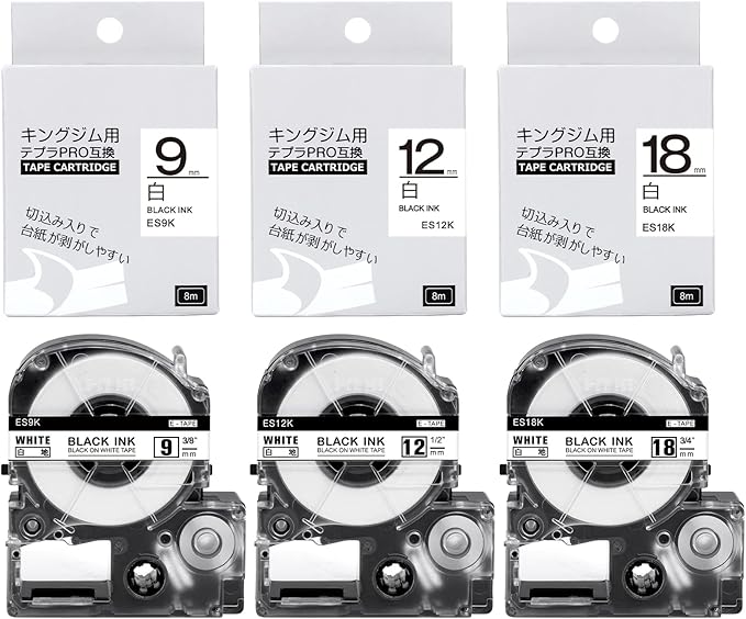 9mm 12mm 18mm 白地黒文字 互換 テプラ テープ 白 キングジム テプラテープ テプラPRO テープカートリッジ SS9K SS12K SS18K ラベルライターテープ 黒文字 3個セット | oioioichan
