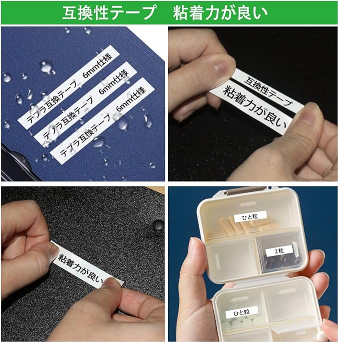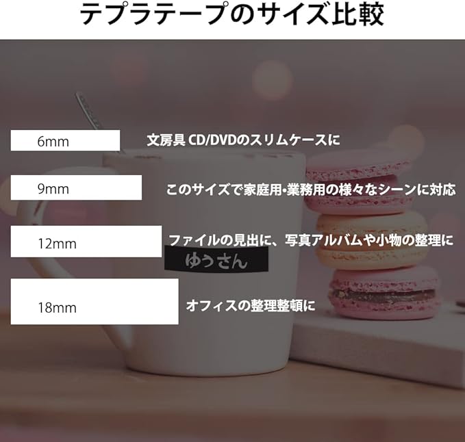 【特徴】本製品はキングジム テプラ テープ 9mm 6mm 12mm 白の純正品と同じ性能を持っています。テープの表面にはテキストの傷や汚れを防ぐための保護フィルムが付いていますので、耐摩擦性があります。耐水性、耐高温性、耐腐食性、強粘着、油汚れを防ぐなど性能がもちろんあります。テプラ 9mm 白の性能が詳しく知りたければ、ビデオをご覧ください。