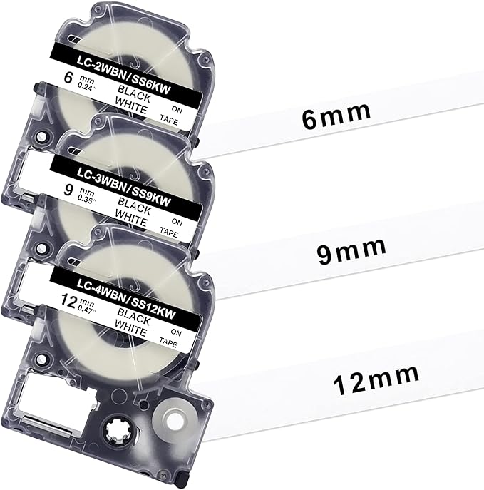 【テープセット&汎用サイズ】YUUのテプラ テープ 白地に黒文字はキングジム テプラ SS6K SS9K SS12K などの互換品、3個セット。キングジム テープカートリッジ テープは6-9-12mm幅、8m長。