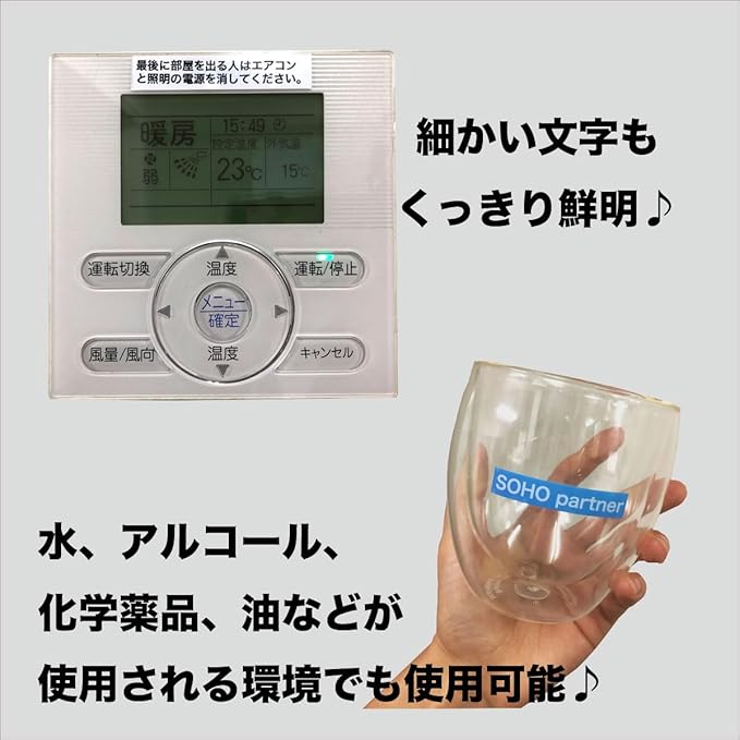 特徴・台紙は切れ込み入りで、使いやすい・不要時はきれいに剥がせる・台紙の材質が静電気を帯びにくく、指にひっつきにくい・長期間使用してもテープ及び文字の色褪せが少ない・水、.、化学薬品、油などが使用される環境でも使用可能・摂氏-20度から120度の環境で使用可能(.では、より広い温度域を対応した耐低温、耐高温テープが販売中)