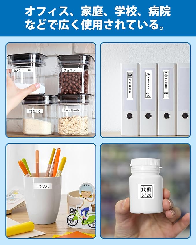 互換性テプラプロ テープは、屋内と屋外の両方で耐久性を提供します。 ファイルまたはフォルダーのラベル、アセットラベル、警告、およびH&Sラベルを作成できます。 棚、厨房機器、倉庫、製造器具にも最適です。 必要に応じてオリジナルのラベルを作成できます。