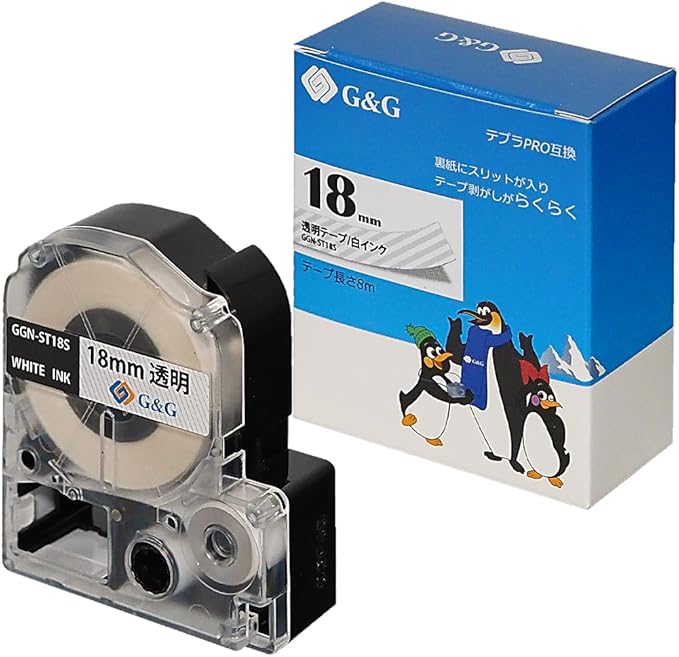 ST18S 透明テープ白字 幅18mm 長さ8m