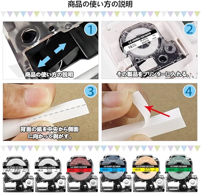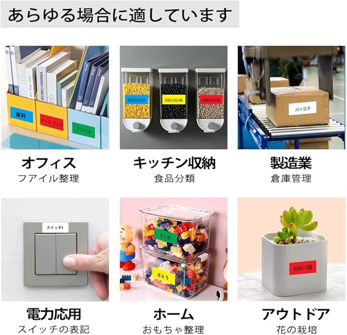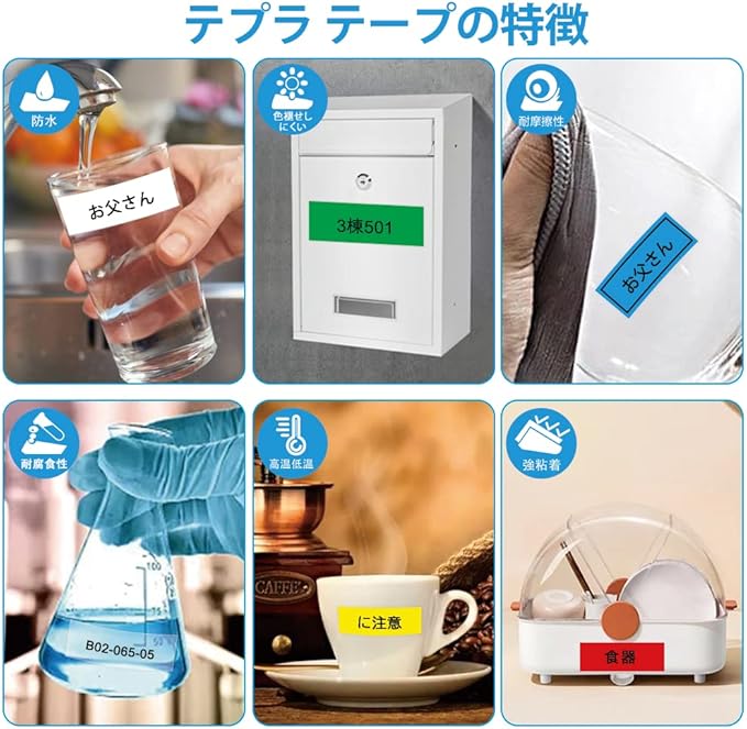 【用途】テプラpro テープ 18mmは家庭、図書館、学校、病院、倉庫、レストランなどの場所で広く使用されている。家庭用品の整理、名前シールの作成、荷物の整理、展示物の価格に使用できます。