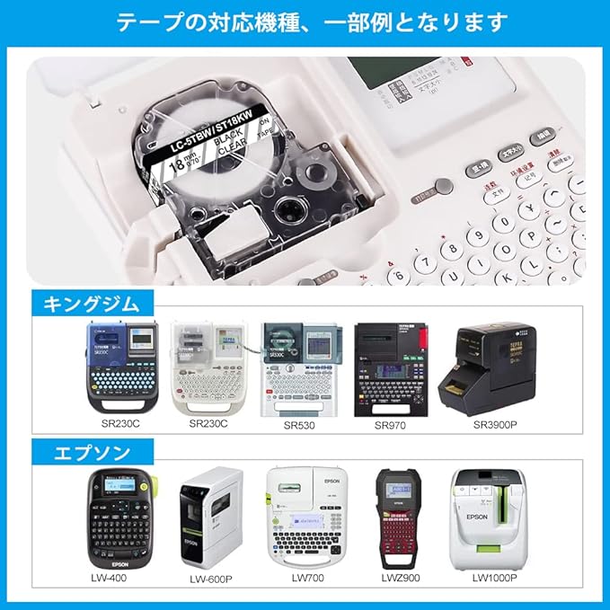 【対応テプラ本体の型番】SR-MK1ヘー、SR-MK1カー、SR-R680、SR370、SR170、SR150、SR-GL1、SR-GL2、SR970、SR950、SR750、SR670、SR550、SR330、SR5900P、SR5500P、SR3900P、SR3500P、SR250、SR45、SR-RK2、SR720、SR600、SR530、SR6700D、SR3700P、SR52、SR300、SR300RK、SR300TF、SR40、SR-RK1、SR818、SR828、SR900などキングジム ラベルライター本体。