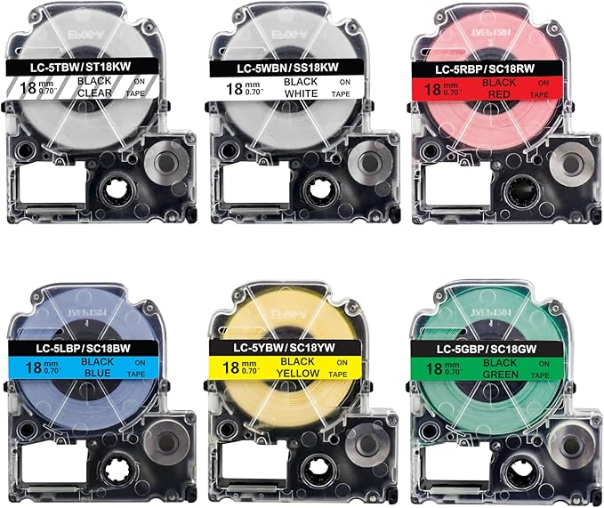 KAKASHI テプラ テープ 18mm 互換 キングジム テプラPRO テープカートリッジ 透明 白 赤 黄 青 緑地に黒文字 ST18KW SS18KW SC18RW SC18BW SC18YW SC18GW 6色セット KINGJIM テプラPRO SR-MK1ヘ- SR170 SR150 SR530 SR-GL1 SR45アオ ラベルライター用テープ | oioioichan