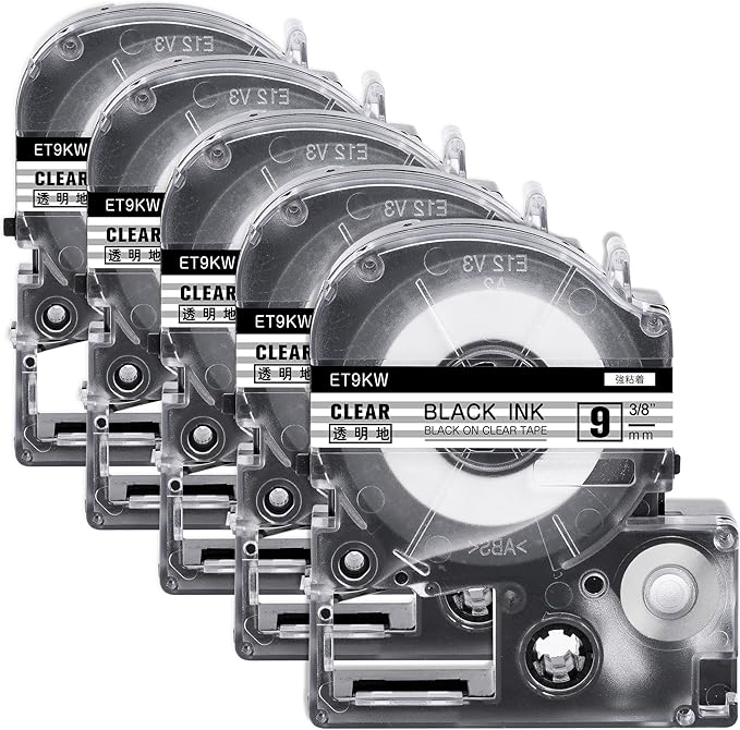 5個 互換 テプラ テープ9mm 透明地黒文字 ET9KW と互換性のある キングジム テプラ テープカートリッジ テプラPRO Kingjim tepra用 (ST9KW) 8M ASprinte | oioioichan