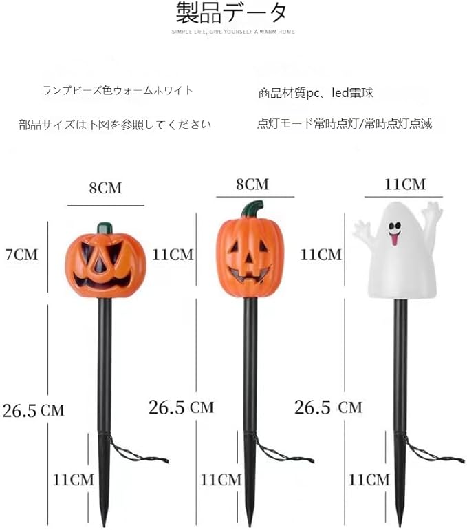 防水設計: このハロウィーンソーラーライトは防水仕様で、屋外使用に最適。雨や湿気を気にせず、どんな天候でも安心してご利用いただけます。