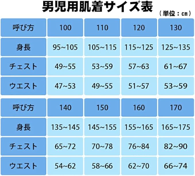 サイズ 130cm(身長:125-135cm/ウエスト:53-59cm) 140cm(身長:135-145cm/ウエスト:54-62cm) 150cm(身長:145-155cm/ウエスト:58-66cm) 160cm(身長:155-165cm/ウエスト:62-70cm) 170cm(身長:165-175cm/ウエスト:66-74cm)