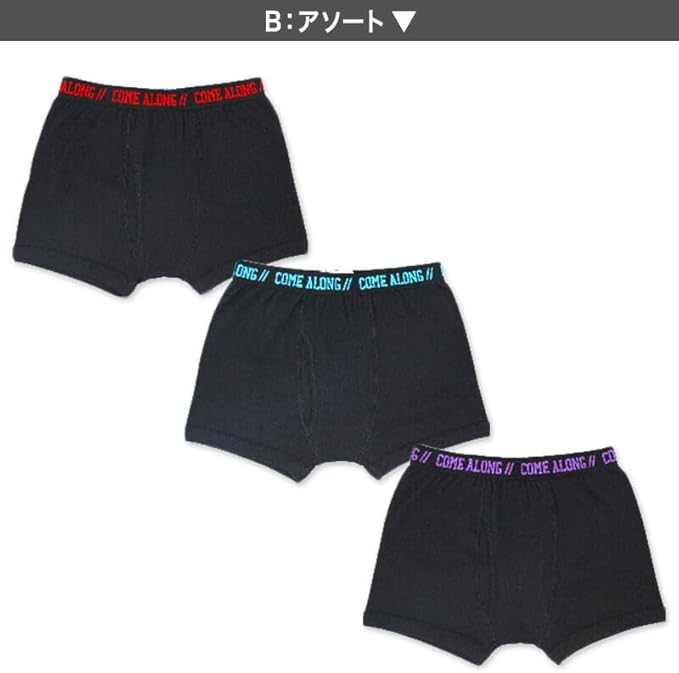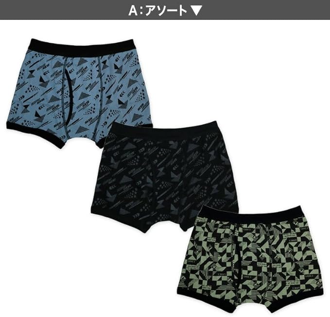 カラー A:アソート(ブルー・ブラック・カーキ総柄) B:アソート(ブラック) 素材・加工 【A:アソート】 本体:綿100% ゴム部分:綿92%・ポリウレタン8% 【B:アソート】 本体:綿100% ゴム部分:ナイロン62%・ポリエステル38% ※素材の混率は生産時期により数%前後する場合がございます 3枚組/前開き/お名前スペースつき 生産国 日本企画海外製