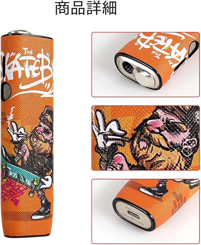 Votabell 加熱式たばこ用ケース ILUMA ONE/イルマ i ワンに適合する(PUレザー製 360 全面保護 耐衝撃 落書き おしゃれ スケートボード模様 オレンジ) | oioioichan