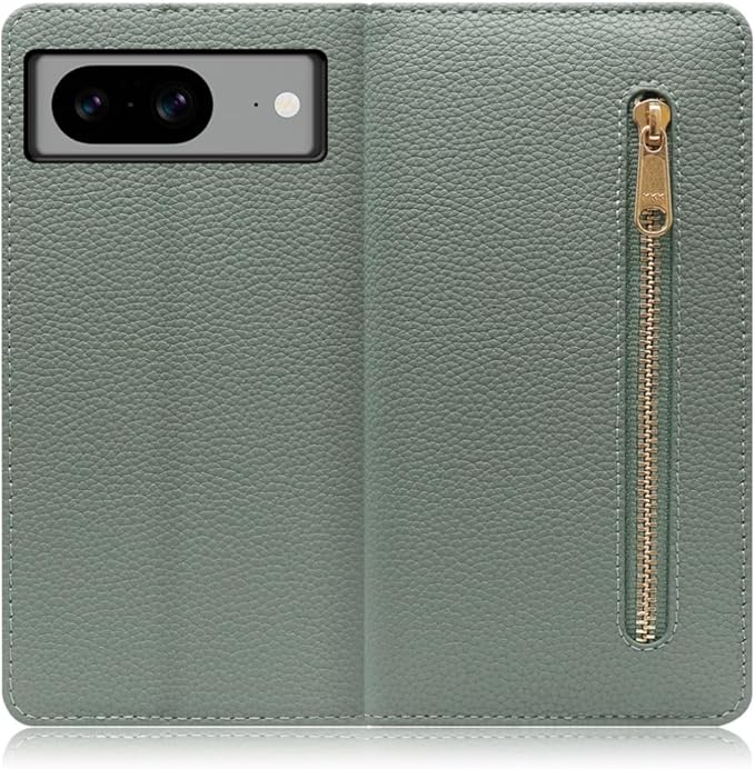 LOOF POCKET Google Pixel 8 Pixel8 グーグルピクセル 8 用 ケース カバー 手帳型 スマホ ケース カード収納 本革 マグネットなし ベルトなし ポケット ファスナー [ダルグリーン] | oioioichan