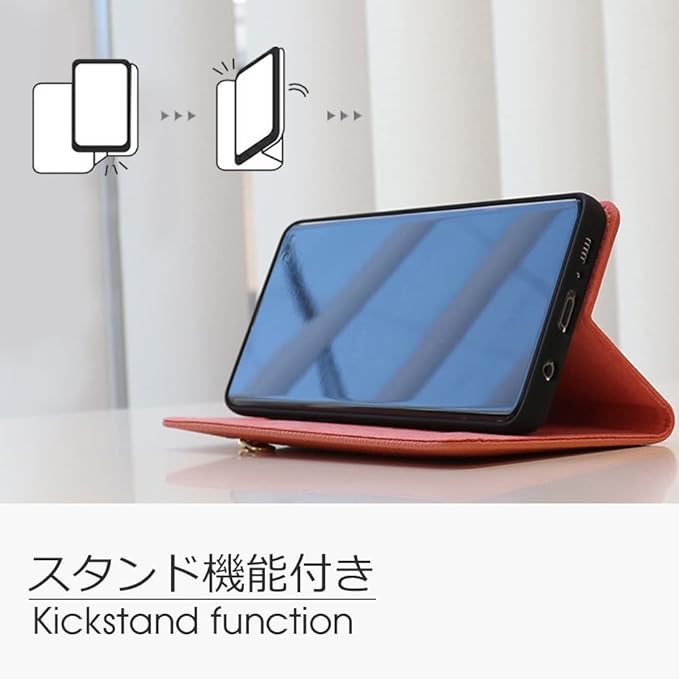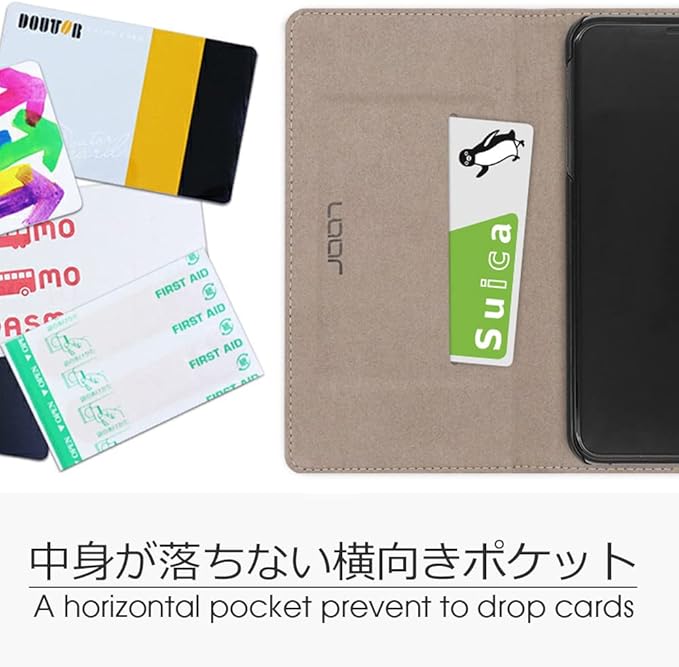 内側には横向き設計のポケットがついているため、スマートフォンを逆さにしても抜け落ちる心配がありません。