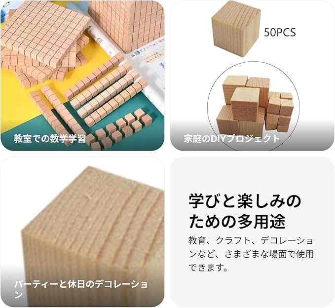 【多目的】: 無垢材のキューブは、教育指導、数学的な数え方、パズルの作成、ゲームキューブ、DIYプロジェクトなどに使用できます。