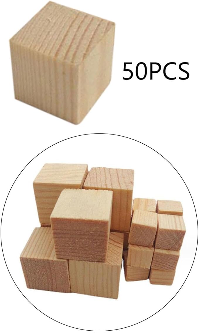 【高品質素材】: 正方形のブロックは木製素材でできており、表面は滑らかで塗装されていないため、DIYで装飾したり、自分で工作したりできます。
