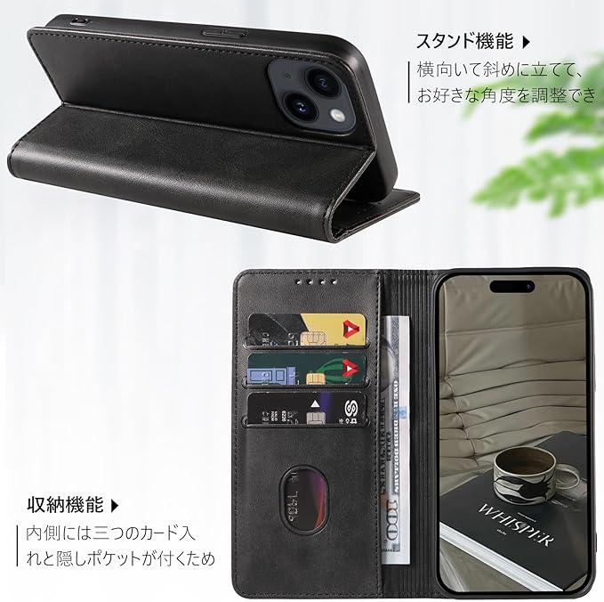【多用機能】このあいほん15携帯ケース手帳型は横置きのスタンド機能が付いて、好きな角度を調整して動画鑑賞や読書などを楽しめます。iphone 15カバーの内側に3つのカードポケットと1つの隠しポケットがあり、カードや小銭などを入れることが可能です。お気に入りの写真がよく見えるように特別にデザインされた透明な窓。