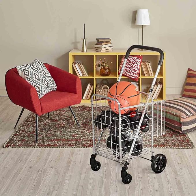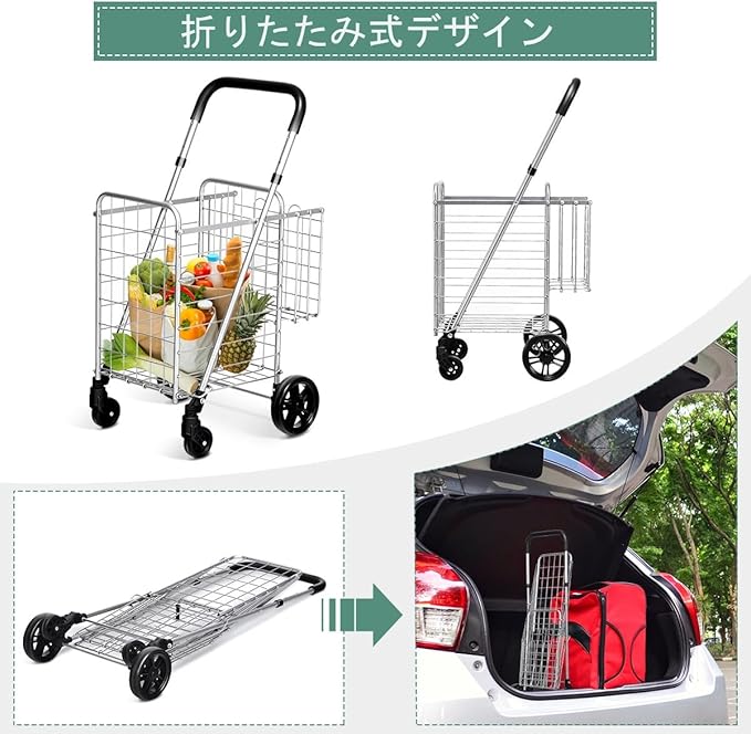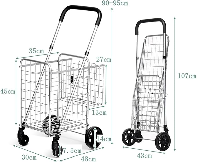 BestBuy ショッピングキャリー 買い物カート キャリーカート 4輪 折りたたみ 大容量 耐荷重20kg 軽量 台車 コンパクト カート 収納便利 多用途 買い物 洗濯 アウトドア (シルバー-S) | oioioichan