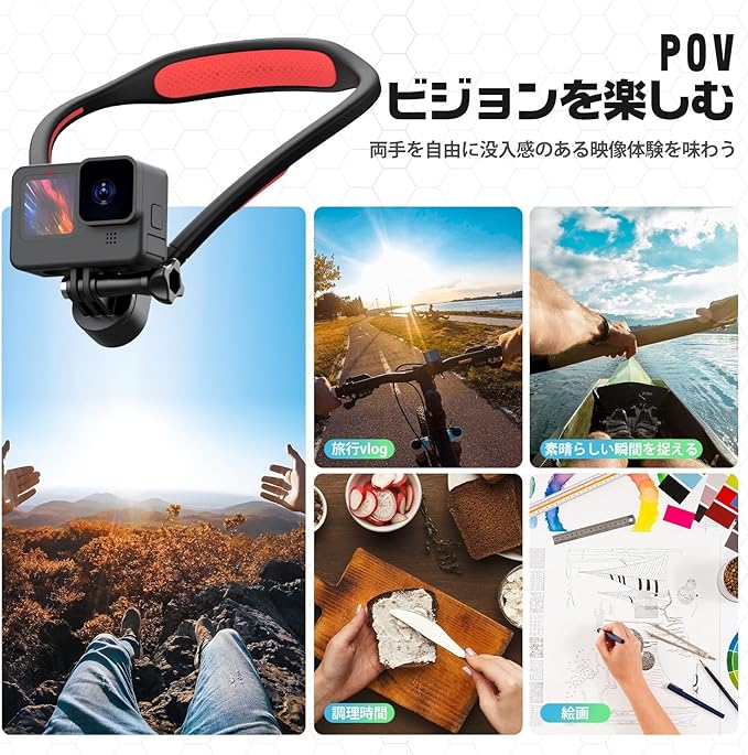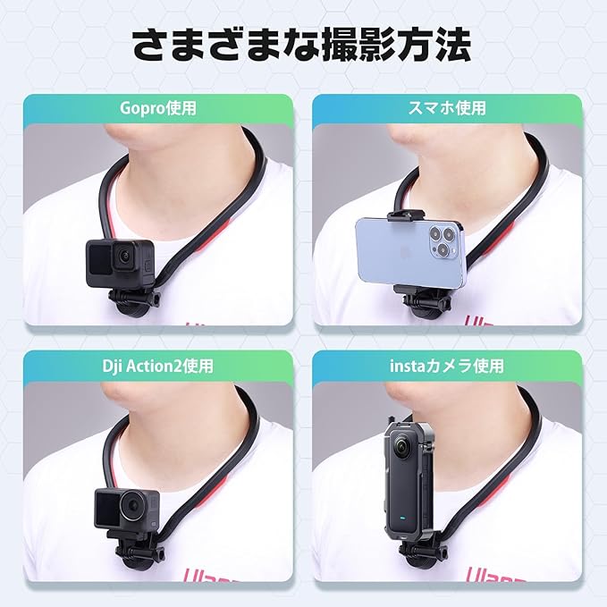 【多機種対応】 重さはわずか176gぐらいで、首に長時間掛けるのに疲れないので、外出先でも自宅でも簡単に持ち運びできます。アクションカメラ対応。スマホに対応(スマホを使用するには、組み立て済みのスマホホルダーを追加購入する必要があります。gpコネクターが付いているスマホホルダー)アクセサリー接続が可能な製品であれば、互換性を持って使用することができます。