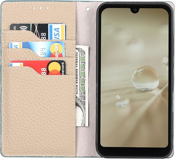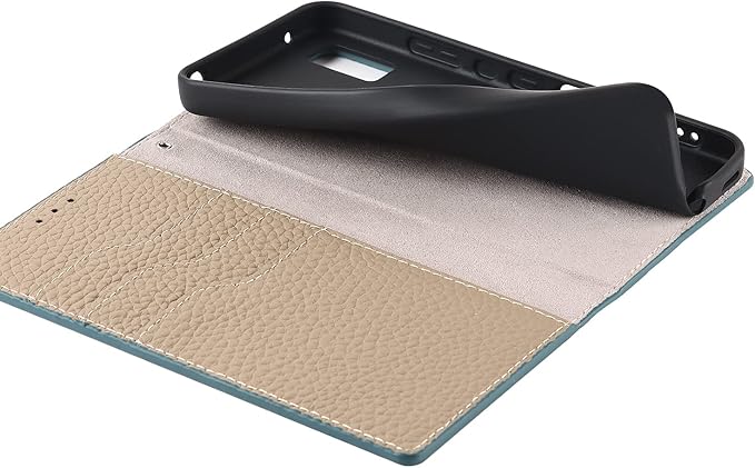【素材】: シンプルさと高級感を兼ね備えたデザイン, 外殻は牛革製品 本革レザーを採用しており, 内側はスマートフォンにフィットし、隙間なくそれを保護するソフトTPUシリコーン材料で作られています。