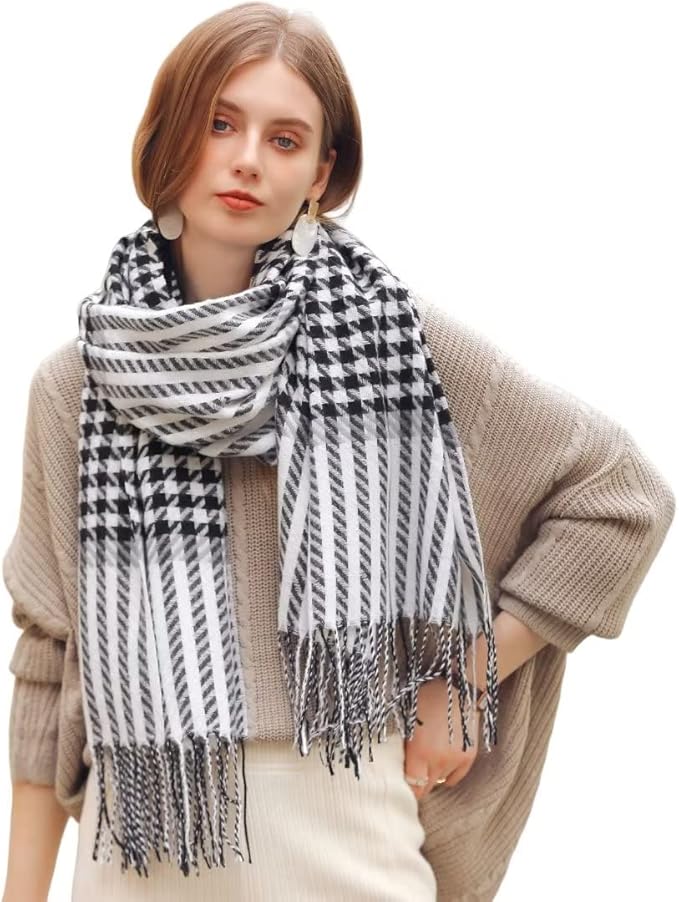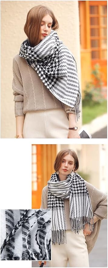 ベーシックで合わせやすい千鳥柄防寒マフラー、コーデの主役にぴったりな1枚!