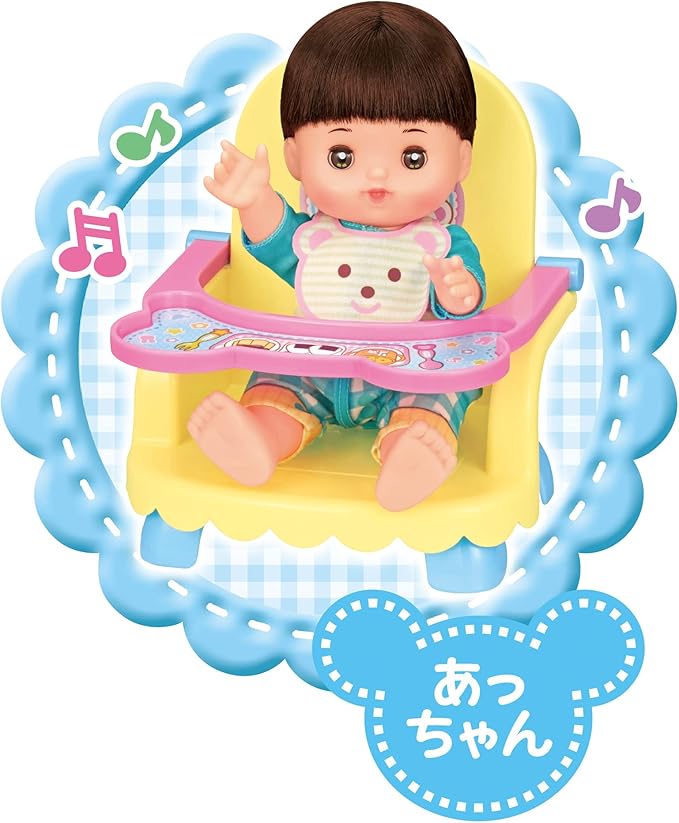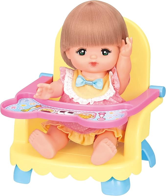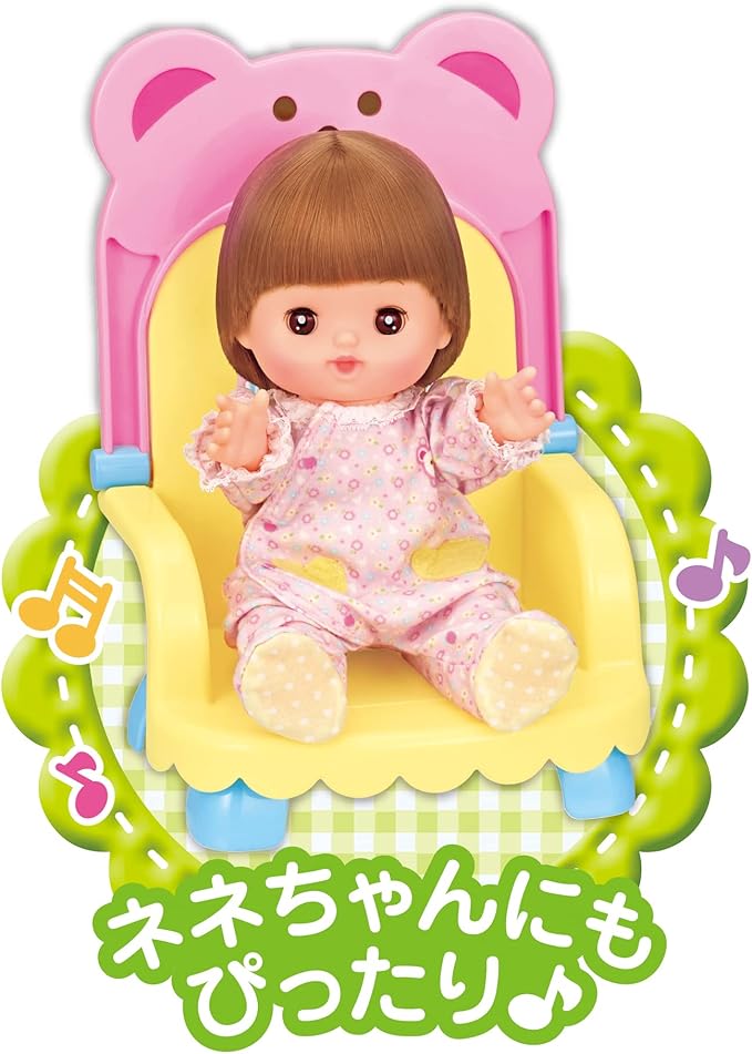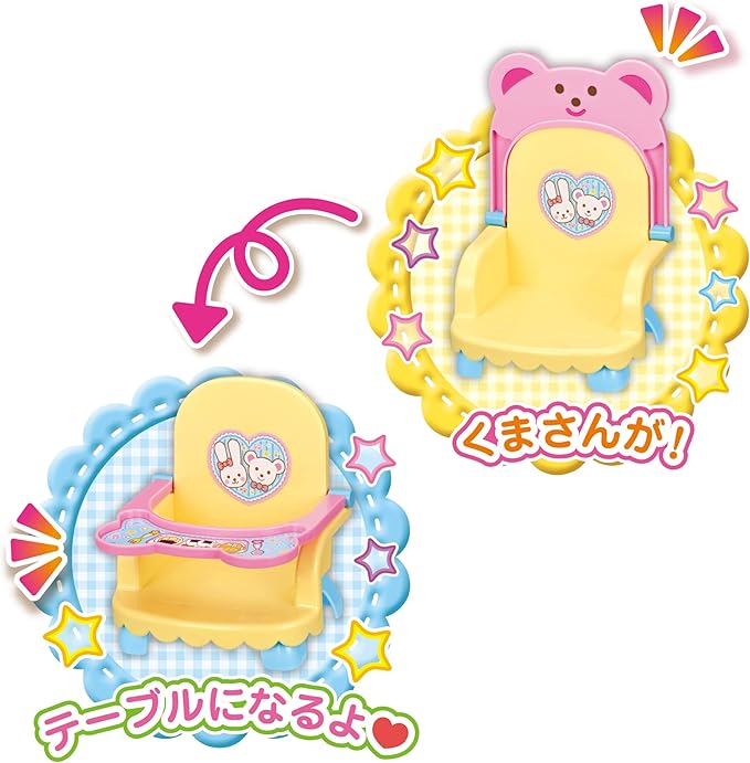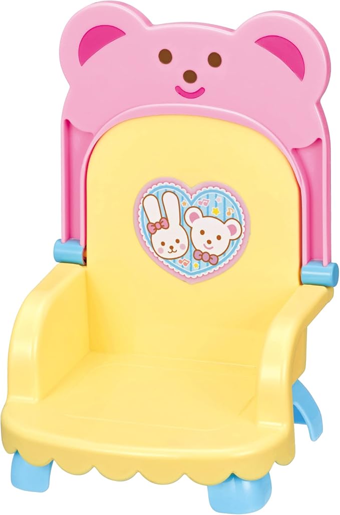 くまさんのかわいいベビーチェアだよ。メルちゃんやネネちゃん、おともだちにもぴったり。ベビーチェアでおせわしましょ。