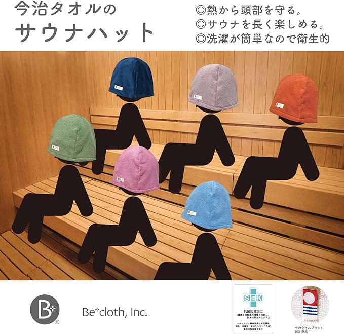 今治タオルブランド認定のサウナハットです。心地よい肌触りで頭部を守ります。