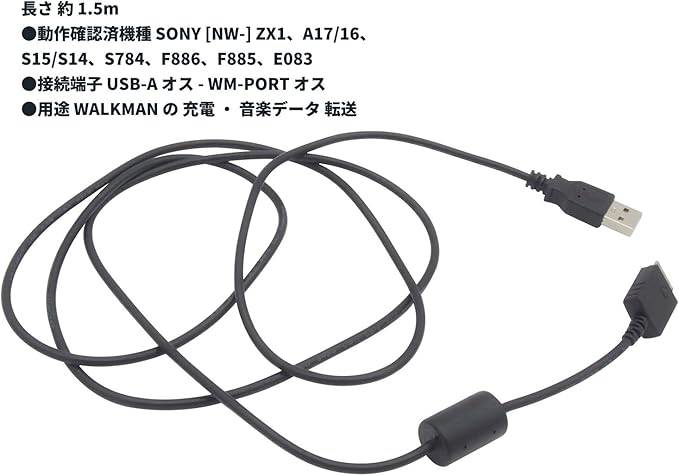 ●接続端子 USB-A オス - WM-PORT オス ●用途 WALKMAN の 充電 ・ 音楽データ 転送