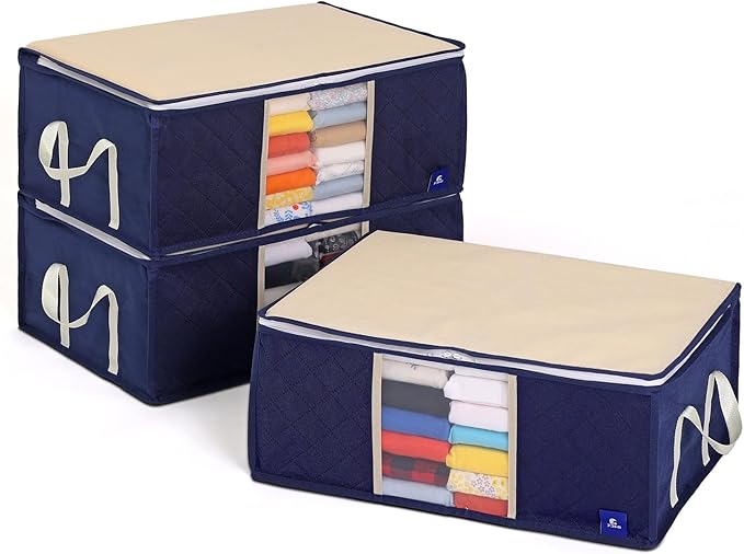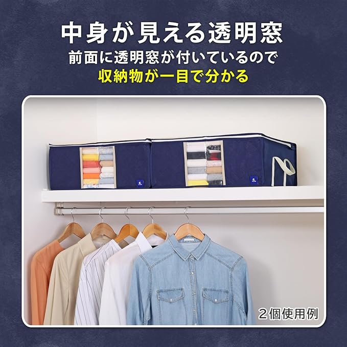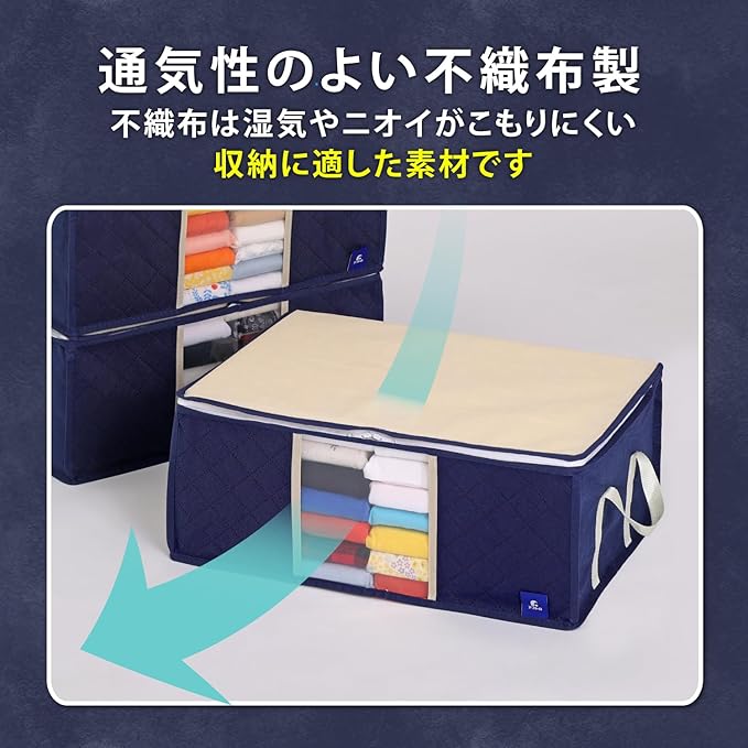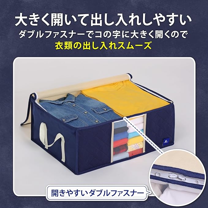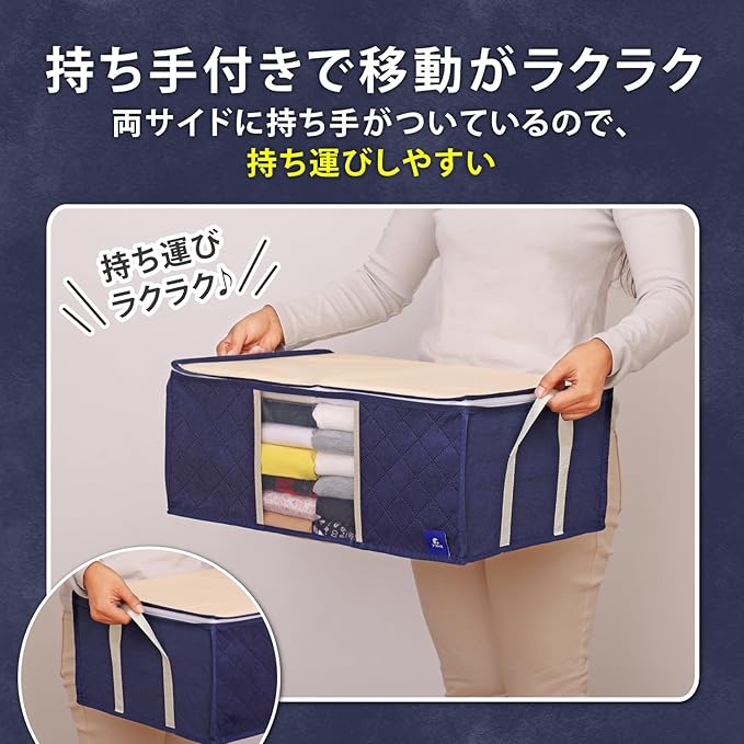 アストロ 活性炭消臭 衣類収納ケース 3枚組 活性炭のチカラで消臭保管 通気性の良い不織布がホコリなどの汚れをガード 3層構造の厚手でしっかりとした生地 中身の見える透明窓付き 洋服 収納ボックス 衣装ケース 収納袋 クローゼット 押し入れ収納 ネイビー 615-24 | oioioichan