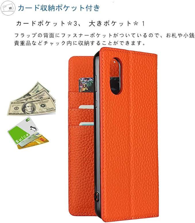 【上質の皮革+T本革】レザーケースは、レトロの表面(高品質のライチ紋真皮)+優しい裏面(柔軟なT本革カバー)と組み合わせ、衝撃吸収機能あり、プレミアムトップグレイン本革製の精密で、質感、強さ、キャラクターなどが厳選されています。。 丈夫で柔らかい感触。耐衝撃性 スタンド機能、耐衝撃性 スタンド機能、滑り止め性、耐久性保護性、スリムフィット性。柔軟性のある熱可塑性ポリウレタン(T本革)と本革レザーバンパー。