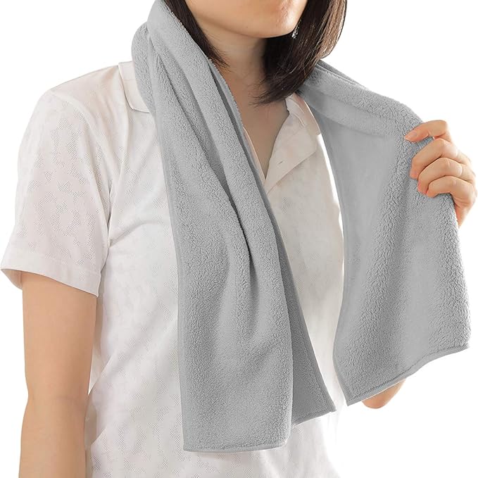 首に掛けやすい細長サイズのマフラータイプのタオル。スポーツの際に首や方にかけてご使用いただけます。