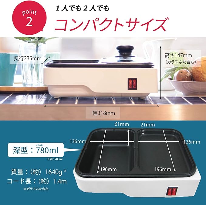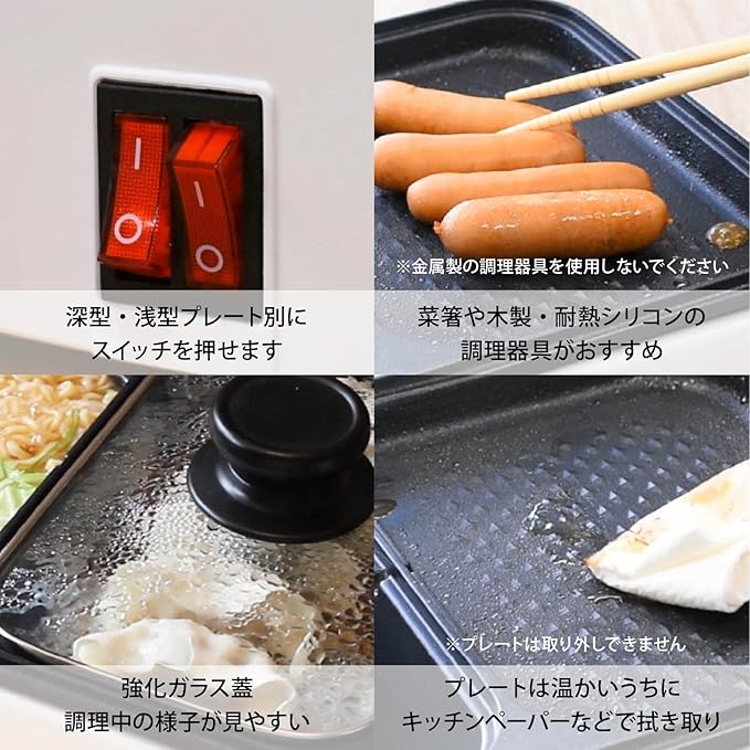 【ご注意】この商品はプレートの取り外し、水洗いはできません。ご使用後は、かたくしぼった濡れふきんなどで、きれいに拭いてください。質量:(約)1640g(ガラスふた含む)