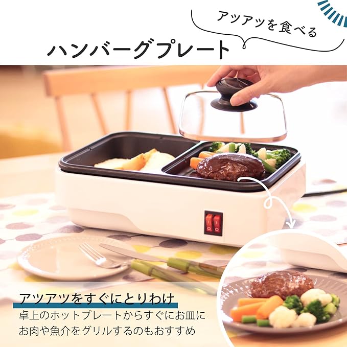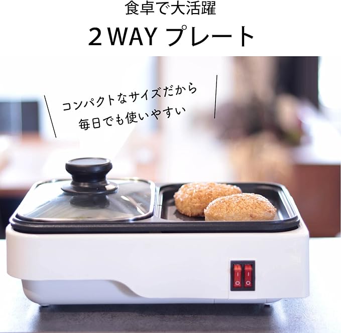 2WAYプレート ホットプレート 鍋付き 一人暮らし COK-YH100B-W 08-1209