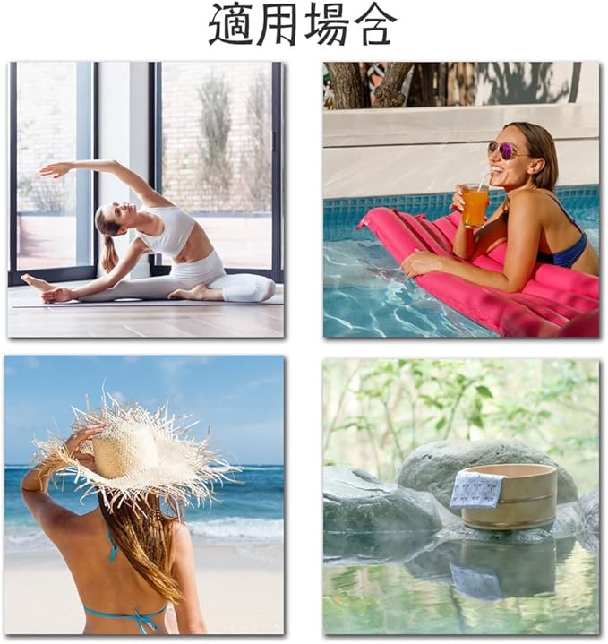 【適用場合】温泉、スパ、プール、ジム、サウナなど、どこでもお使いいただけます。