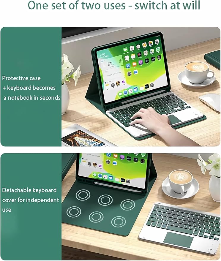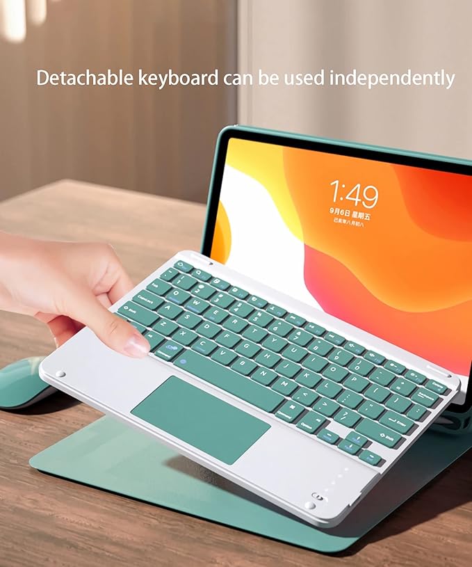タッチパッドキーボードデザイン: 内蔵のタッチパッドにより、ノートパソコンのようにカーソルを操作することができ、画面をタッチしたり、追加のマウスを使用する必要はありません。Bluetoothキーボードは、IOS、Android、Windowsの3つのシステムに対応しています。