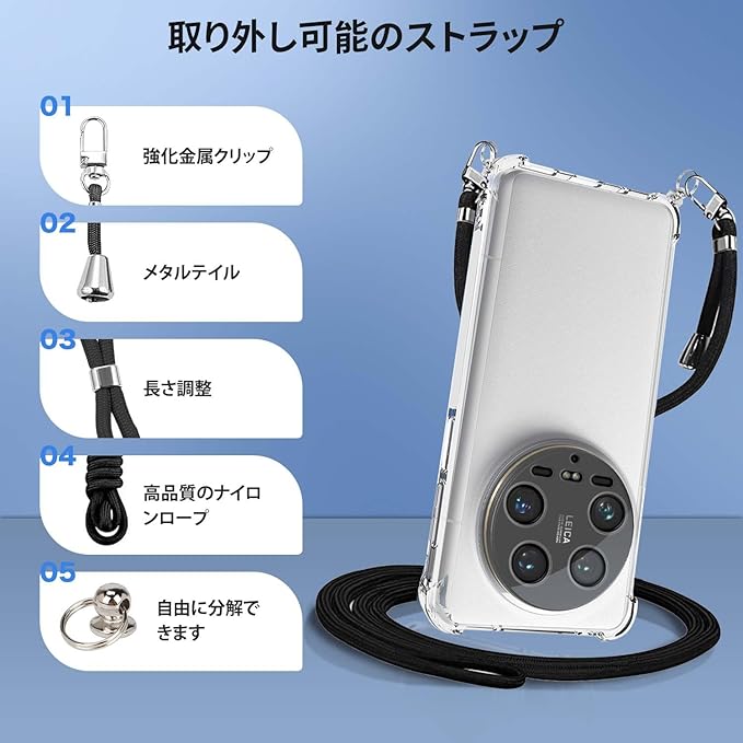 Xiaomi 14 Ultra 5G 用 ケース 肩掛け スマホケース 斜めがけ 織りストラップ付き 斜めかけ 縄掛けケース 【HUKWIMO】調節可能なショルダー 縄掛け クリア ショルダー カバー 薄型 耐衝撃 紐付き カバー 落下防止 ファッションデザイン 柔軟で変形しない Xiaomi 14 Ultra 5G 対応 [クリア 透明] | oioioichan