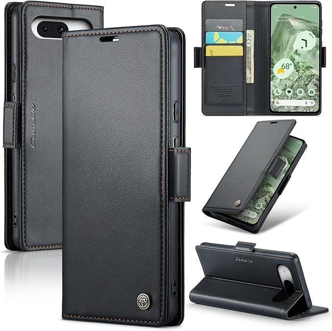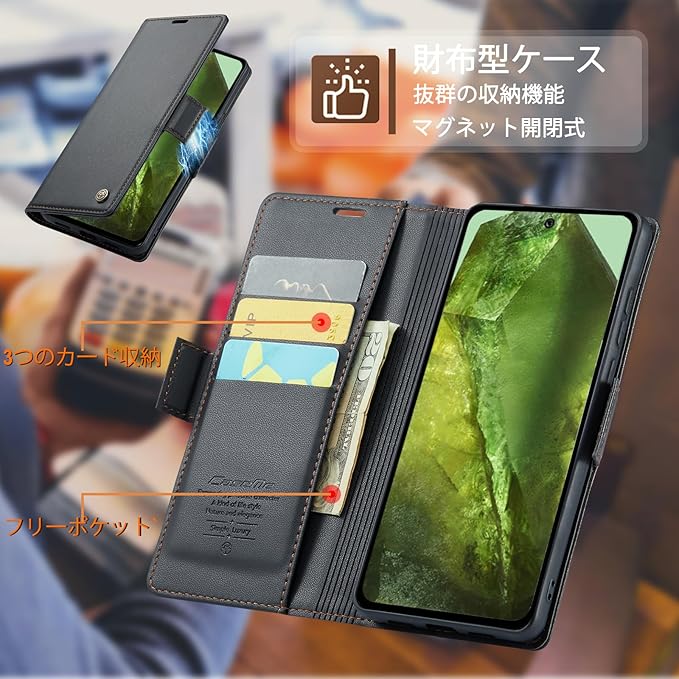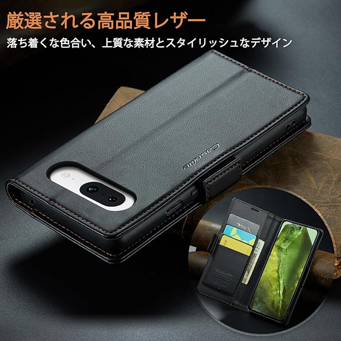 RicYeel Google Pixel 8a 対応 ケース 手帳型 財布型 カードポケット付き 高級レザー ピクセル8a 用 衝撃吸収 スマホケース 全面保護 カード収納 スタンド機能 携帯カバー 磁気バックル付き ストラップホール付き (ブラック) | oioioichan