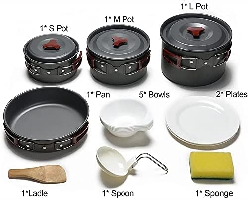 4-5人用アウトドア調理器具セットキャンプ食器アルミパンパンプレートボウル調理セット旅行ピクニックハイキング用