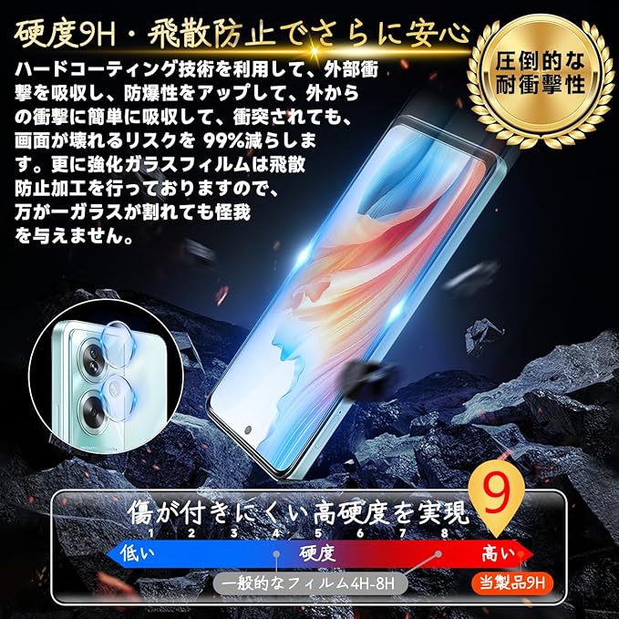 対応 OPPO A79 5G ガラスフィルム 指紋防止 【2* フィルム + 2* レンズ保護フィルム】国産旭硝子材質 OPPOA79 5G 薄型 強化ガラス OPPO A79 5G 保護フィルム 高光沢 OPPOA795G 液晶 ガラス ケース 9H硬度 厚さ0.26mm超薄型 高透過率 気泡なし ラウンドエッジ加工 簡単貼り付け 3D Touch対応 | oioioichan